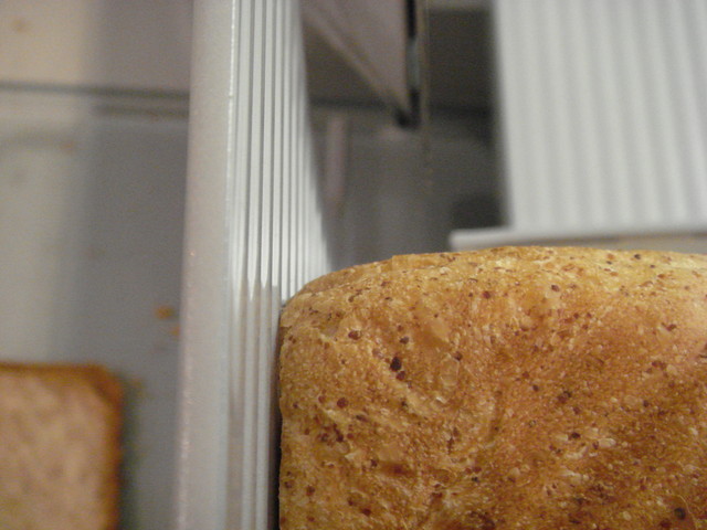 放置待切食物的部位并不长..所以我先把吐司切一半..