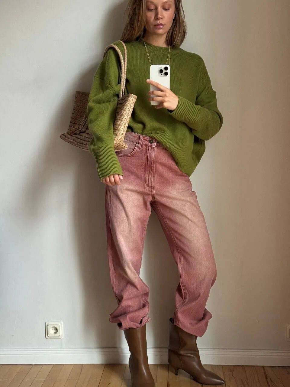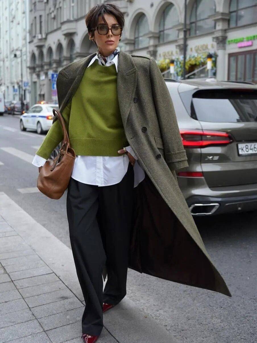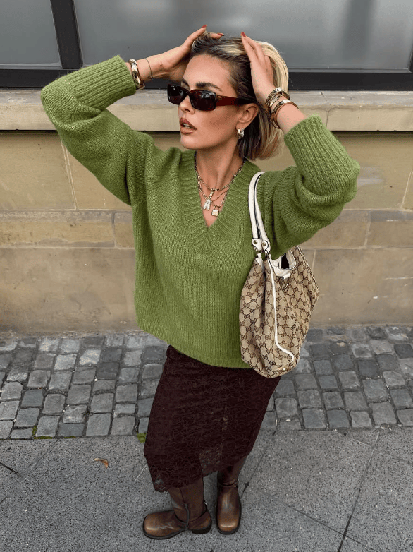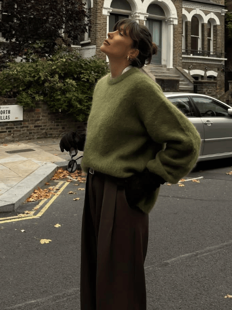 随着绿色+棕色的爆火,绿色毛衣也终于走进了人们的视野,这个差点被低估的色彩,总算迎来了属于它的审美热潮。