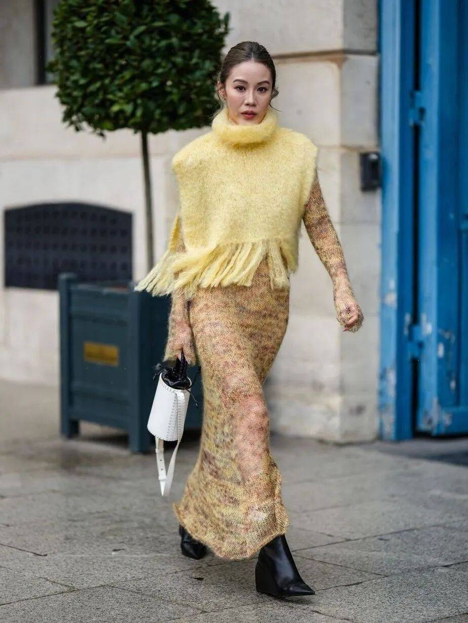 不难发现,每年秋冬,都是穿彩色毛衣最美的时节。时髦女士还玩出了不同的穿法特色,各种风格都能轻松驾驭。