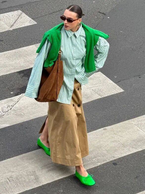 橄榄绿或青黄绿,被无数时髦精反复喜爱,经典而不出错,怎么搭都时髦。
