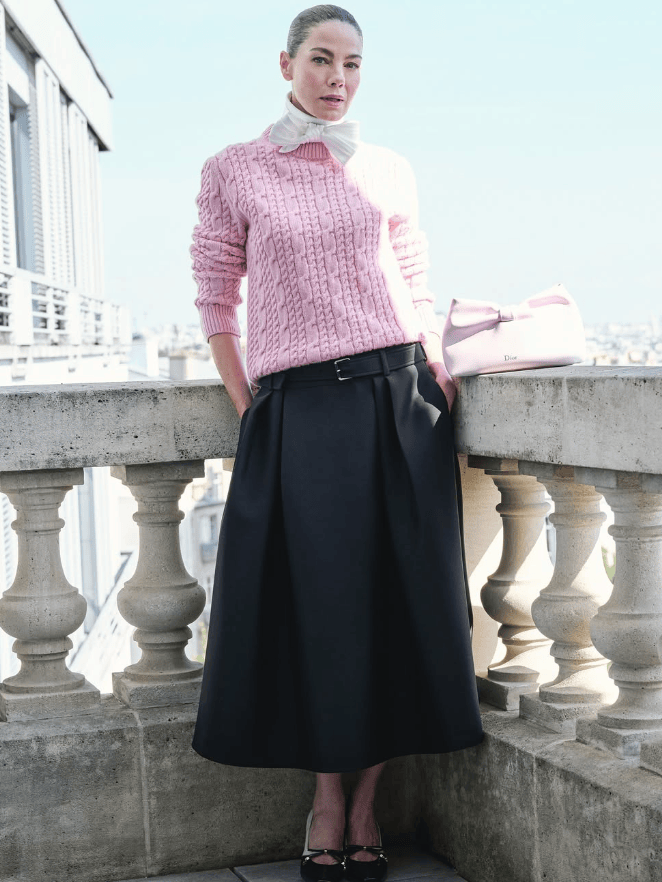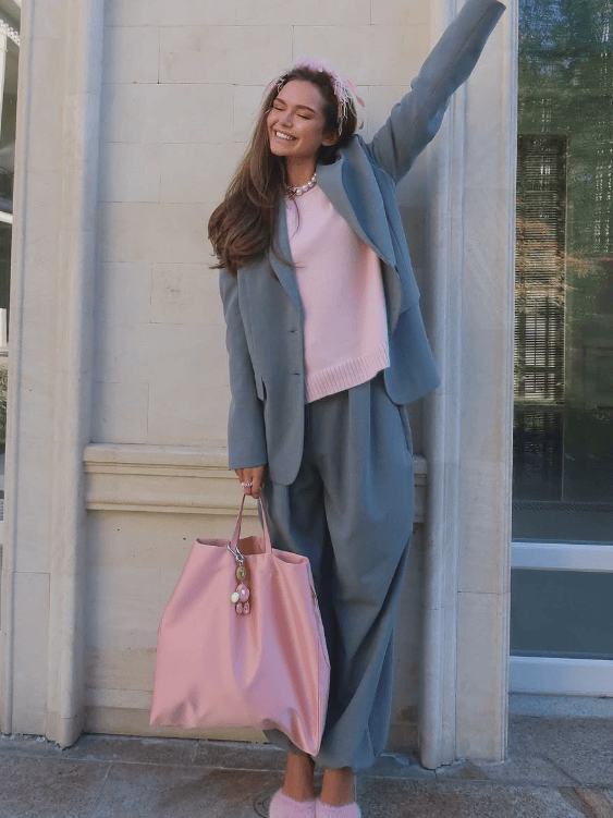 非常适合与灰色、黑色、美拉德色的下装搭配,这样不仅不会过于甜腻,还可以巧妙与各种风格融合,克制而不失活力。