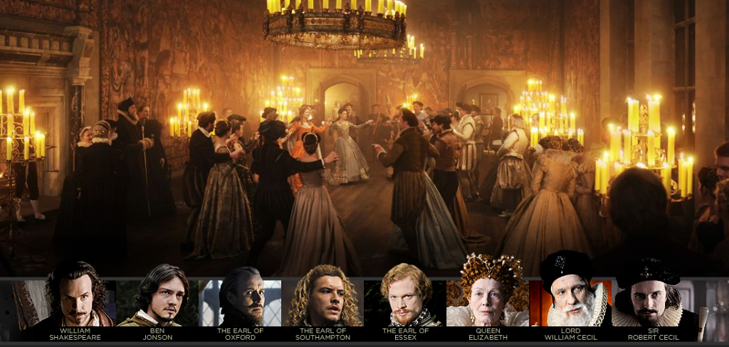 电影 Anonymous 的结构使用了嵌套和多层叙事的手法,由现代剧场开始,向剧场中的观众声明,“我们将要讲一个更黑暗的故事,关于手中之笔,掌中之剑,戏剧的胜利和王位的遗失...” 而故事的开始则从著名的“环球剧院”烧毁开始倒叙,由本•琼生的受拷打镜头,切入观众的哄笑场面,顺利过渡至威廉•莎士比亚作为一个喜剧演员的出场。在这 一场景中,英国民众对戏剧的痴迷,上流社会对戏剧的鄙夷、厌恶和压制,作为戏剧作者的本•琼生,作为演员的威廉•莎士比亚和即将作为主角的爱德华•德•维尔纷纷出场;而且在轻巧转接之后,转向安内普顿和埃塞克斯伯爵关于宫廷斗争的讨论,由此故事的画卷已缓缓展开。在故事中,伊丽莎白女王的青春时期对诗歌的爱好,牛津伯爵爱德华•德•维尔的成长,两人的爱情故事,都是在各自的章节以相似的镜头叠化回忆展现,故事始终保持着轻盈的速度和广度,充满丰满的情节和感情。待到威廉•莎士比亚冒认作者并且敲诈伯爵,伯爵自己的身世揭穿,以及伯爵戏剧性的“阴谋”被更老谋深算的西塞尔所挫败,故事的跌宕起伏程度越来越剧烈,直至爱德华的弥留之际,本•琼生抱走爱德华的所有作品并且声称他为“时代的灵魂”,这一故事随着主人公的离世落下帷幕,归于平静。