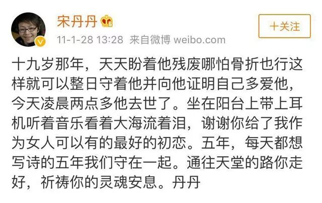 2011年1月28日,已回国立业的袁钢因脑溢血不治,此时孩子尚在上初中。已与英达离婚十四年的知名演员宋丹丹,发了一条微博怀念自己的初恋: