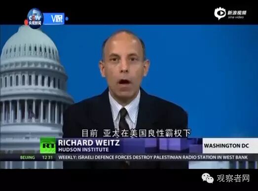 据央视介绍,理查德-韦兹(Richard Weitz)是哈佛大学肯尼迪政治学院政治学博士,现任美国知名智库哈德森研究所政治军事中心主任兼高级研究员,前美国国防部政策幕僚。他的研究领域包括欧洲、中亚和亚太事务,以及美国外交和军事政策。韦兹出版过几十本地缘政治书籍,最近出版的包括《重塑美国亚太军事力量》(Rebuilding American Military Power in the Pacific: A 21st-Century Strategy )和《全球安全观察-中国篇》(Global Security Watch-China)。韦兹所在哈德森研究所是美国著名的保守派智库,成立于1961年,其信条是“美国在全球体系中独特而核心的角色是全世界自由,安全和经济增长的基础”。