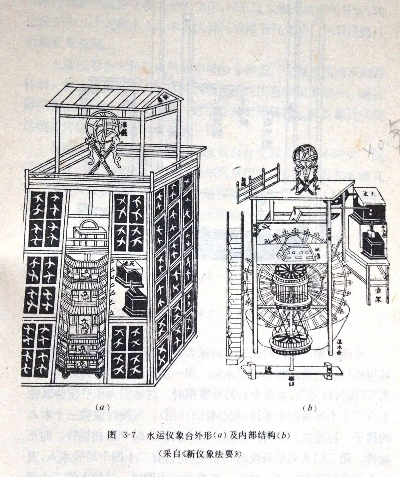 图3,苏颂发明的“水运仪象台”造型和内部结构图