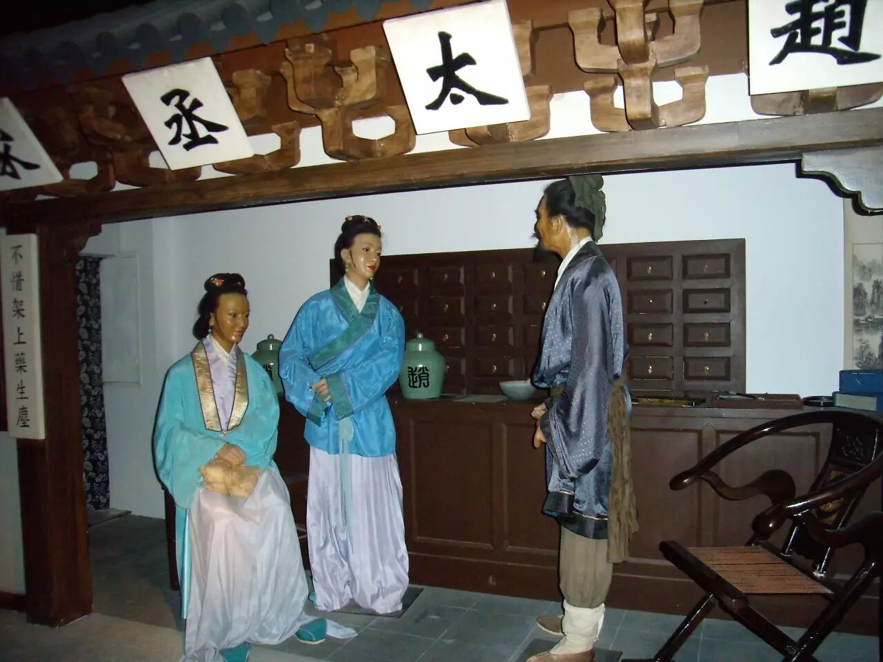 图9,上海中医历史博物馆复制的《清明上河图卷》里的中药房(林凤生摄)