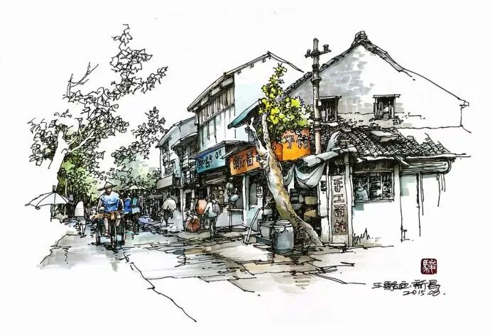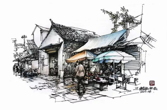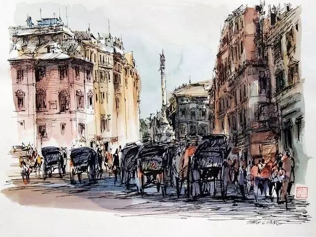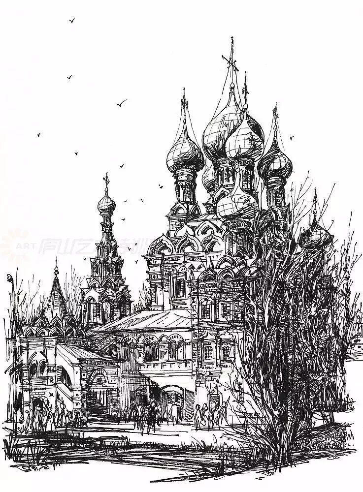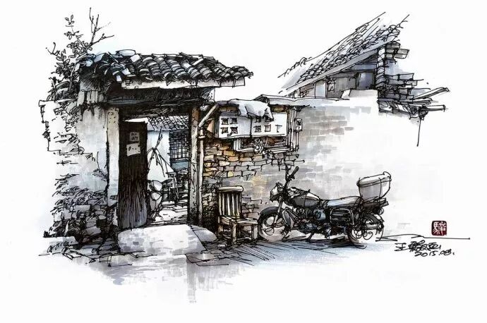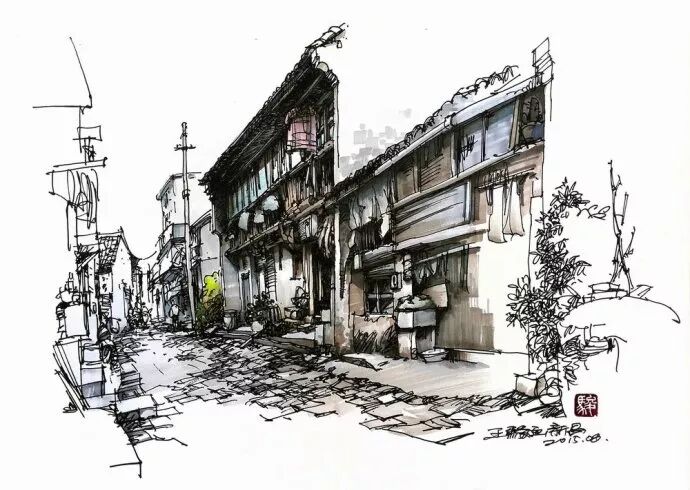 钢笔画是具有独特的美感,十分有趣的绘画形式。其特点用笔肯定果断,线条刚柔流畅、黑白对比强烈。画面效果细密紧凑,对所画事物能做精细入微的刻画。