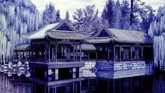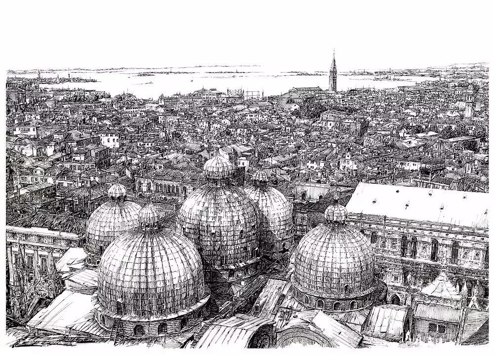 自幼受文艺复兴时期的文学名著影响而迷上钢笔画的王骏,山水与建筑都惟妙惟肖,跃然纸上,生动自然,丝毫没有钢笔线条的生硬感。