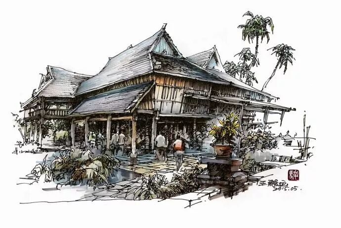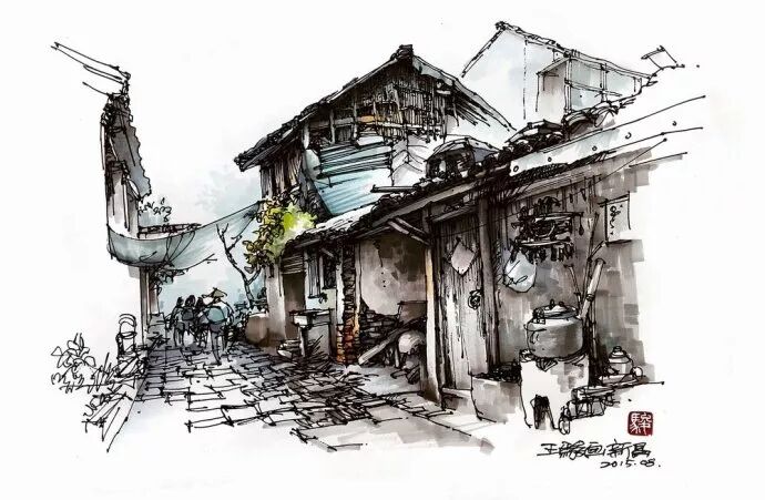 系列作品他近期到广东沿海和皖南古村落写生采风之后,完成的几幅大型钢笔淡彩画力作,都充分表现了钢笔画画种的隽永韵味。