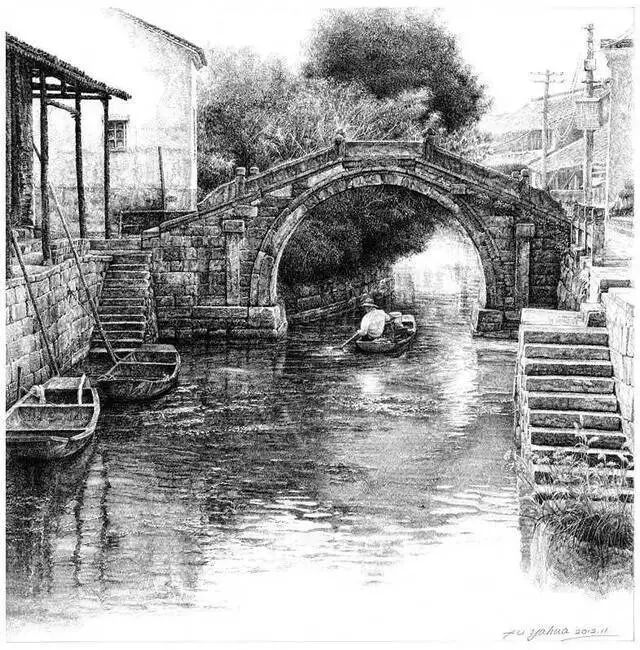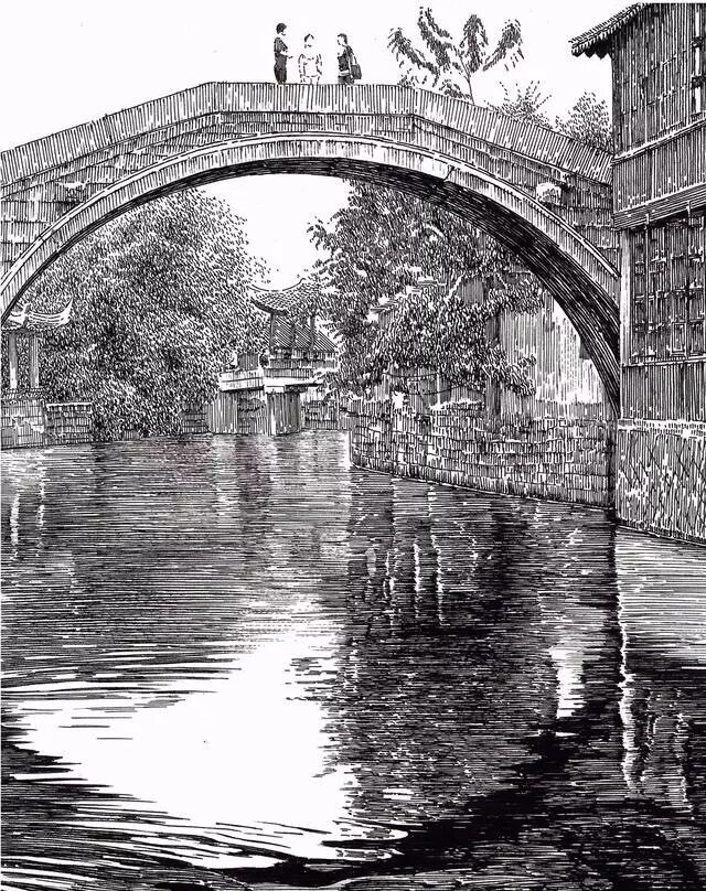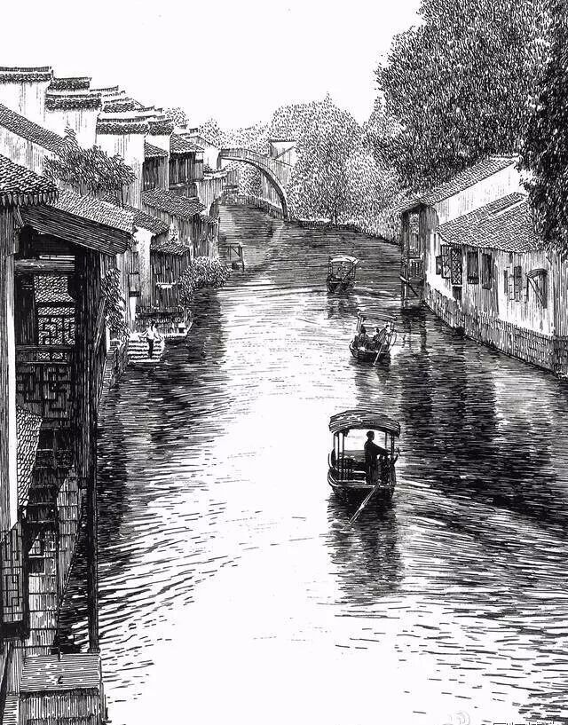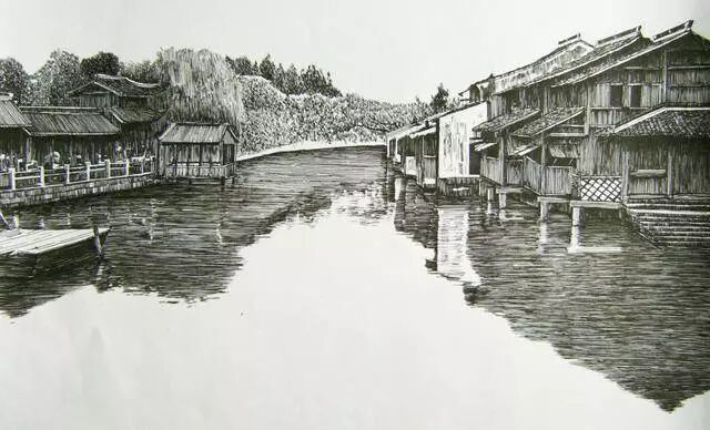 平静的湖水,犹如一面镜子,透过钢笔的塑造,看到了水乡乌镇的自然风光,怎一个美字了得。