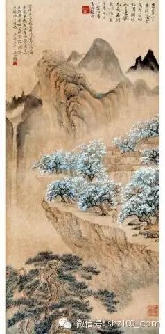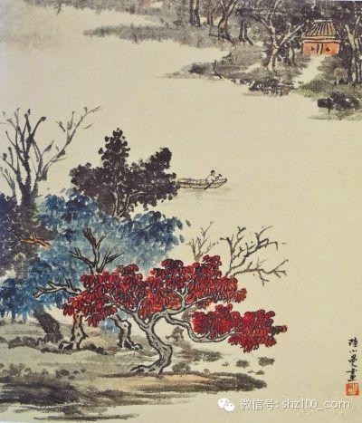 【陆小曼风景画】陆小曼擅长设色山水,画风近清代王鉴一路,有幽雅淡远之趣。