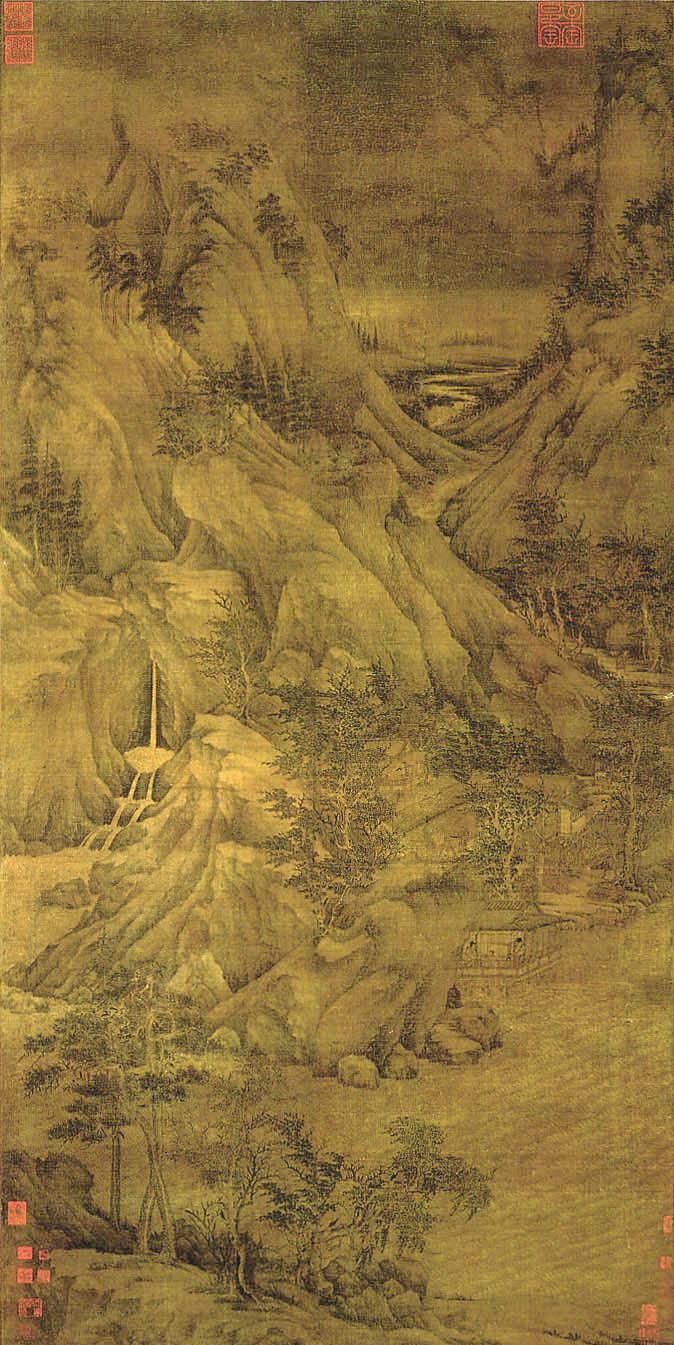 董源 《溪岸图》 绢本设色 221.5×110厘米 美国纽约大都会博物馆藏