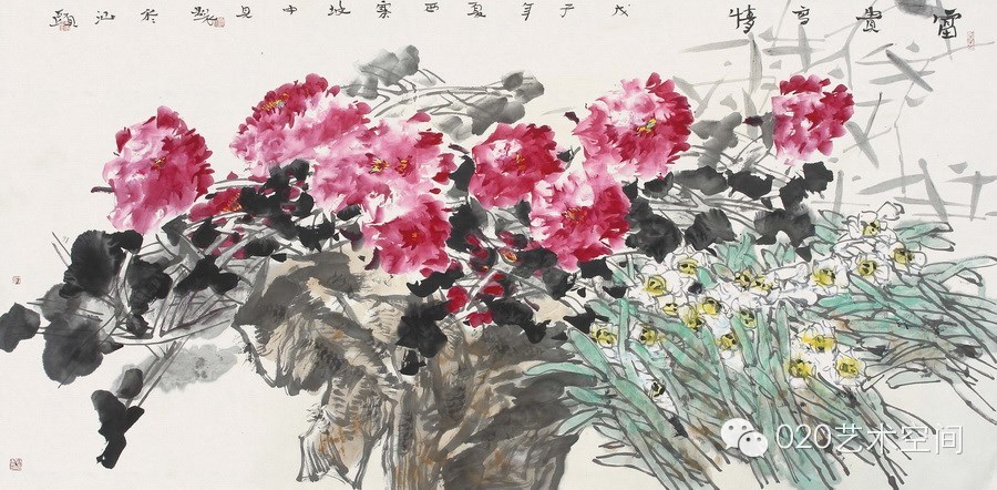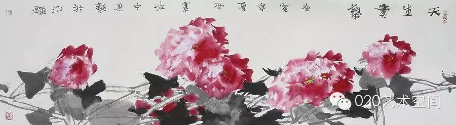 想写卢中见,从那一抹牡丹红在层叠的墨色中磅礴而出。它平和大气,雍容富丽,它中正明快,超然脱俗。每熙日良辰常思以及也。有道是:“什么样的人,画什么样的画”,此言不虚!“自李唐来,世人盛爱牡丹”,画者众矣。然牡丹之难画,不在于如何把它画的“好看”,而在于不让它“往俗里去了”。我想,为人为艺也复如是!