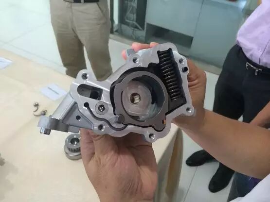 上图中的变排量机油泵可以在发动机转速升高时,适当调节机油泵内的油压,减少泄压阀的泄油量,减少发动机功率的消耗。