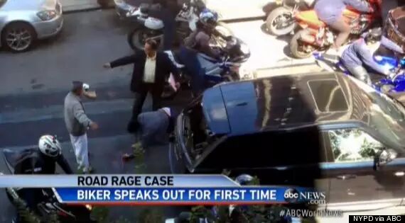 7.这是开SUV的华人,在纽约高速路口,遭遇摩托车帮 “路怒症”的暴打视频截图