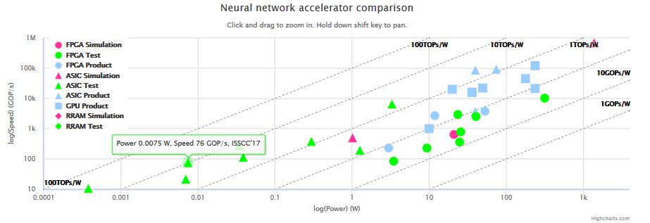 数据是粮食,算法是灵魂,芯片就是决定脑力的关键。在这场算力的比拼中,有多条道路通向中央领奖台,他们的物理性能在特定的场合不分伯仲,从下图可以看出,单位功耗的算力(TOPS/W),GPU(图形处理单元)、FPGA(现场可编程门阵列), ASIC(专用集成电路)相差无几,GPU略微领先一点。