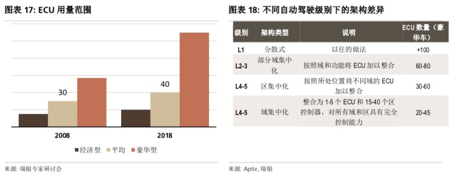 据瑞银集团在一份Model 3的拆解报告显示,这款车上,只使用了大约20来个ECU,而一般情况下,电子程度如此之高的豪华车,上面有将近100多个ECU。