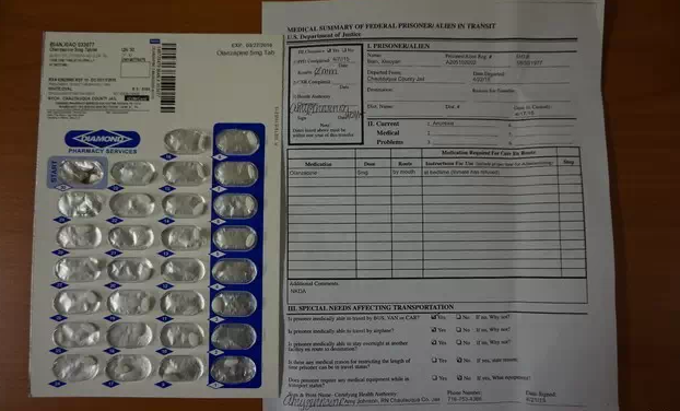 美国警察交接完人之后,将一盒药片还有一张服药说明递给了老单,指了指脑袋,又指了指小兰(化名)。