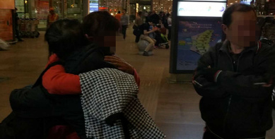 晚上8点50,航班出人意料地提前了,老单和小菲带着小兰在T3C等候。先找到人的是小兰爸,父女一言不发抱头痛哭,父亲不断抚摸女儿严重脱发的头,而找了一圈的小兰妈得到消息过来后,小兰立刻扑进了母亲的怀抱,小兰爸抱着手站在一边扭头不敢看。