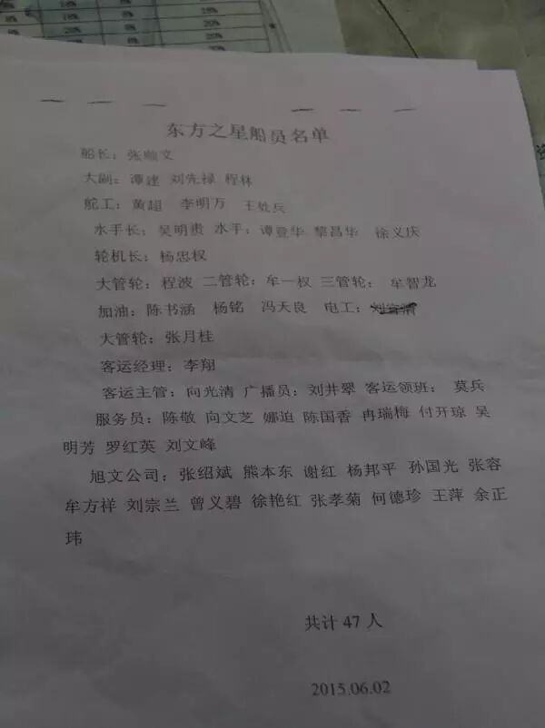 6月2日,在协和旅行社上海总部大厦5楼,某保险公司工作人员向澎湃新闻(www.thepaper.cn)提供了一份沉船游轮上的游客名单。