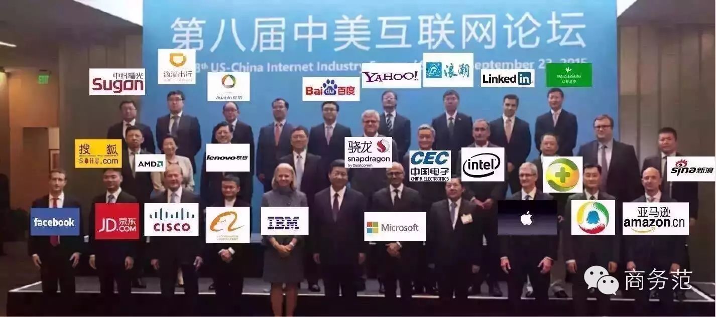 参会阵容有多豪华呢~习大大就不用说了,BAT(百度、阿里、腾讯)、京东、搜狐、奇虎360、新浪、联想的CEO都来了。美国的微软、苹果、IBM、亚马逊、英特尔也通通都在。总之个个都是耳熟能详的大企业。