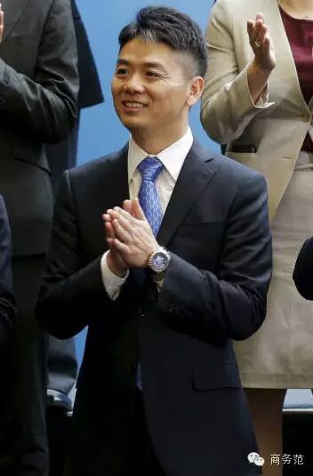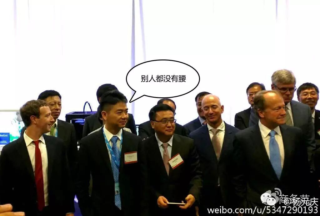 看这张图就知道刘强东的西服收了多少腰,巨大的开叉。