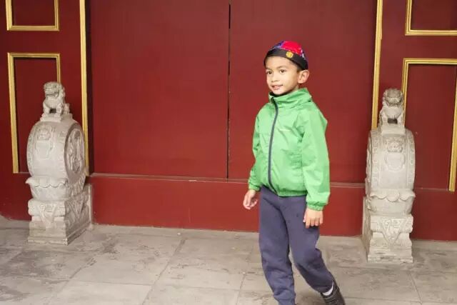 这个歪果小孩子对门和石鼓很是好奇