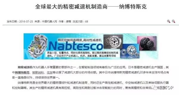 世界精密减速器,中空轴减速机以及单轴伺服执行器和控制器的领导者--日本纳博特斯克。纳博特斯克(Nabtesco)在其业务领域掌握高端核心技术,占有很高的市场份额 ,这玩意儿到底有多难?在中国的机器人行业减速机一直作为核心零部件被重视,而当今世界的核心零部件市场被外来的企业所垄断,国产机器人也在现阶段面临这个问题总是尴尬,机器人减速机市场高度垄断,普及期国产减速机无法实现全面进口替代。