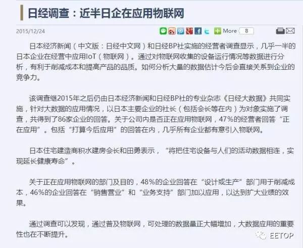 美日在抢占物联网的技术,专利。目前进半日企都开始应用物联网技术。