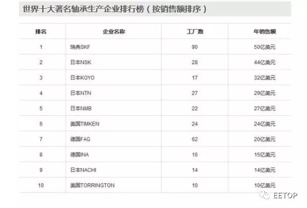 2015全球轴承排行,日本,瑞典,德国的天下。这个东西在工业领域的发挥的重要作用和对材料学的要求,内行都懂。