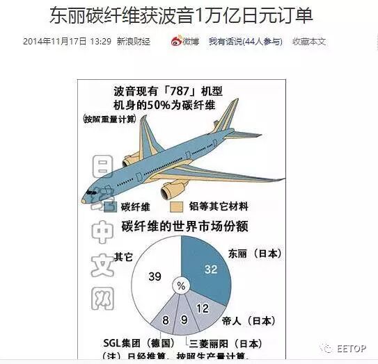 波音,空客是东丽的常客. 空客在2010-2025期间要从东丽进口价值21-32亿的炭纤维材料,波音也一样。