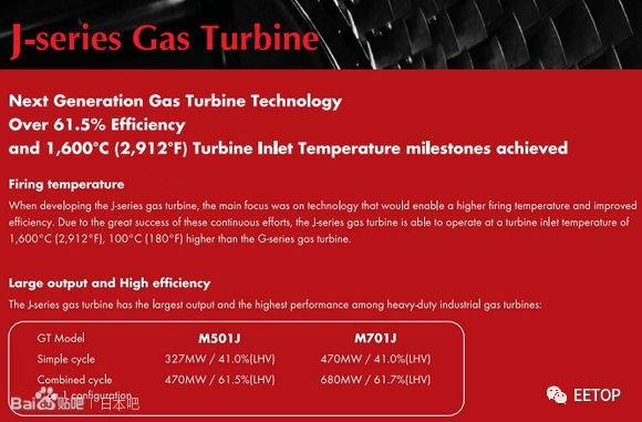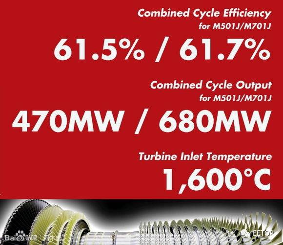 三菱重工,日立,西门子的天下。世界最高热效率发电用燃气轮机就来自日本三菱重工的M701J,热转换效率比M501J再次提升了0.2%,刷新了世界记录! 并且是世界最大功率燃气机轮,拥有单机470兆瓦,GTCC联合循环680兆瓦的容量!