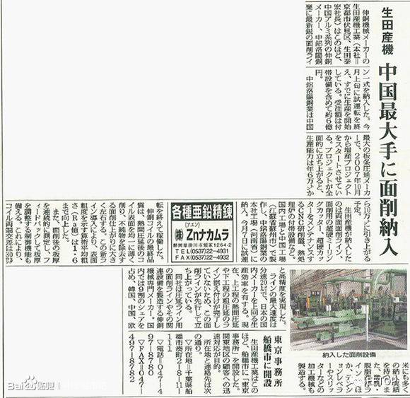 中国高精尖科研设备铜材主要提供商,国家重点扶持机构中铝洛铜向日本生田产机购买一整条伸铜双面铣面切削生产线;世界几乎所有汽车品牌上的铜材的加工过程都要利用生田产机的设备完成