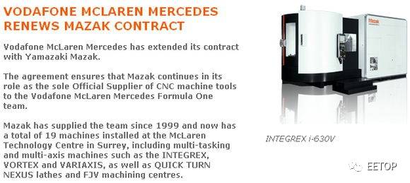 马扎克做为超跑公司迈凯轮的唯一cnc供应商安装了各种机床总共19台在他的技术中心
