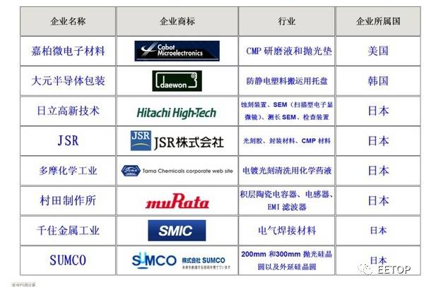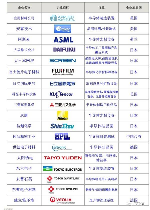 基本被日本,美国霸占,看intel的最佳供应商就知道了。不同的是中国想买有些国外设备,别人不卖。