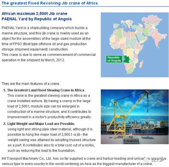 这是IHI在今年3月向安哥拉船厂纳入完成的目前非洲地区最大动臂塔吊