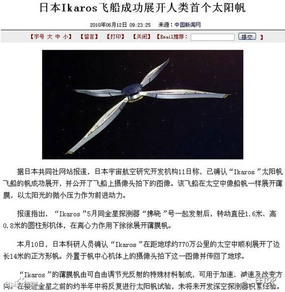 世界首个成功展开并成功实现光子加速推进技术的太阳帆飞船(太阳辐射加速星际风筝)朝金星进发——日本宇宙航空研究开发机构IKAROS