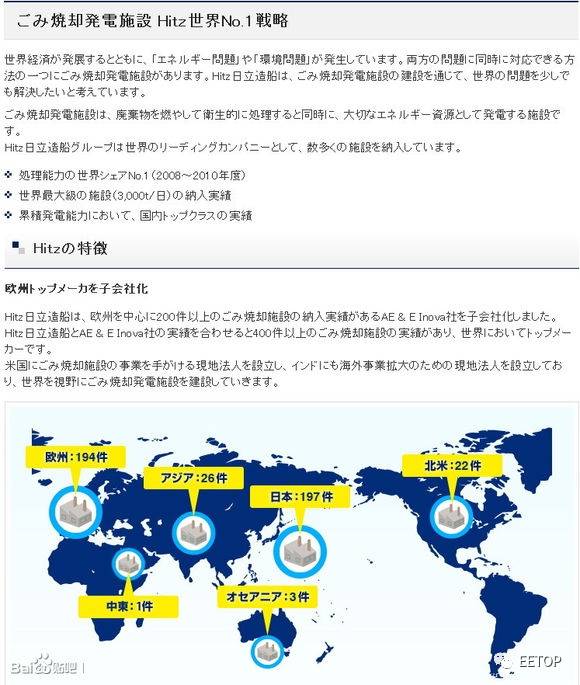 世界NO1,强大处理能力的垃圾焚烧设备也是城市化推进中不可缺少的环保设备,日立造船引领此领域 ,其客户遍布全球。中国安装了26件。