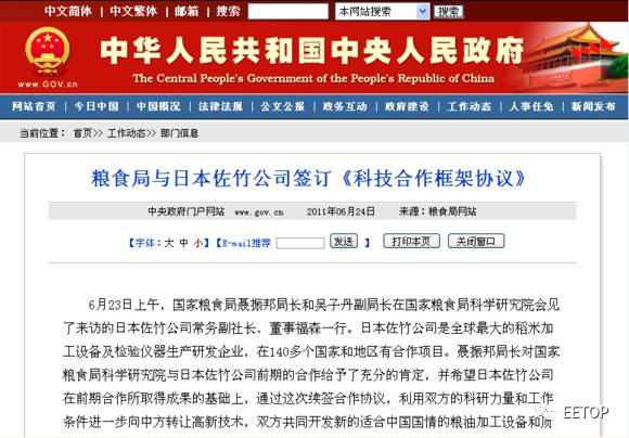 A、 日本SATAKE长期致力于发展人类三大粮食作物之一的稻米方面机械设备,旗下囊括的粮食食品设备、实验检测设备、关联环境机械设备等方面市占率均为第一位,供应从单一到成套系统的全方位设备。 全球主要稻米粮食国家政府与企业均与SATAKE有合作,包括中国、美国、东南亚、南美等地区。如图是中国国家粮食局与日本SATAKE建立的《科技合作框架框协议》