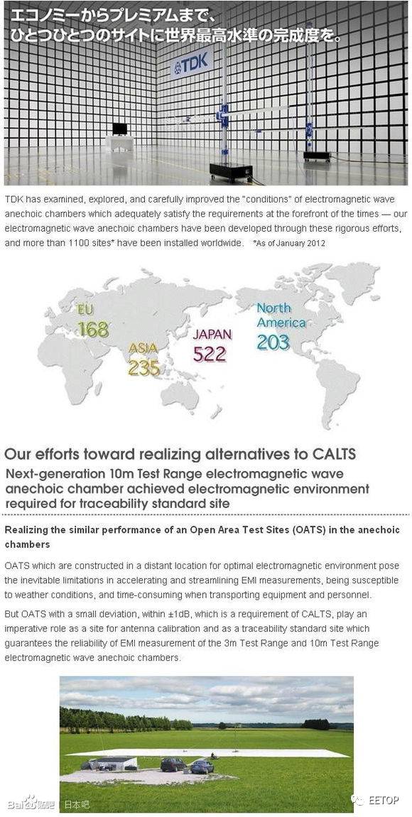 电子成品只要身上存在半导体零件就需要进行电磁波环境测试,测量电磁兼容最重要的设备就是电波暗室,全球最大规模电波暗室制造商——日本tdk