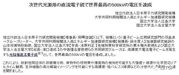 世界最高波束亮度 强度生成能力的能量回收光源光阴极直流电子枪——日本pearl