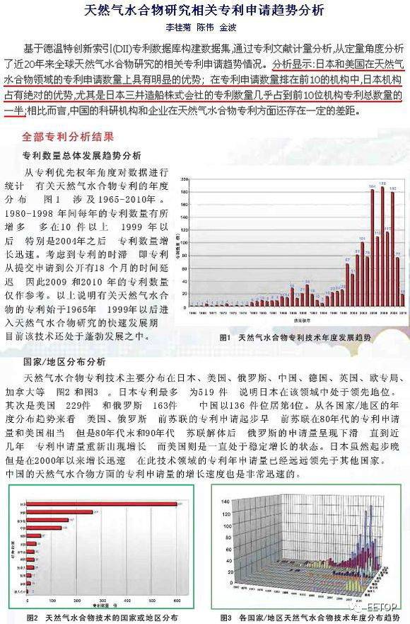 以三井造船为首的日企在本领域不仅具备有形资产,无形资产也是遥遥领先中,以下为中科院广州能源研究所对各国NGH专利实力的一段总结
