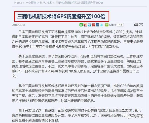 GPS精度的新时代就要到来,来自日本三菱电机!