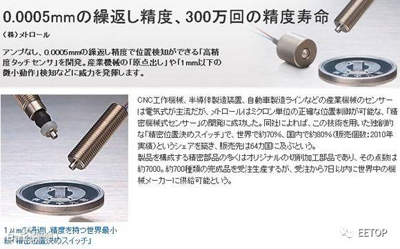 全球70%的精密机床都搭载着由日本Metrol研制的世界最高精度的微米级全自动对刀仪;对刀仪是为了应对机械在随工作时间加长切削轴热膨胀加剧后切削刀尖产生磨损,至使坐标跑偏的必备测量兼修正工具