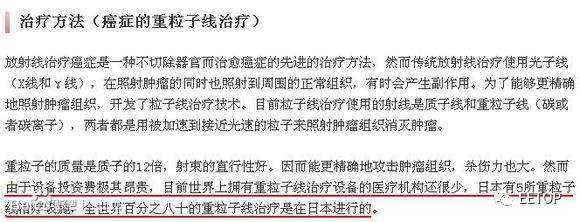 E、 医疗硬件的最高峰——全球仅有的6台投入使用的重粒子癌放疗设备有5套在日本 1套在德国,目前选择不开刀而接受重粒子线放疗的患者中有80%是在日本进行的