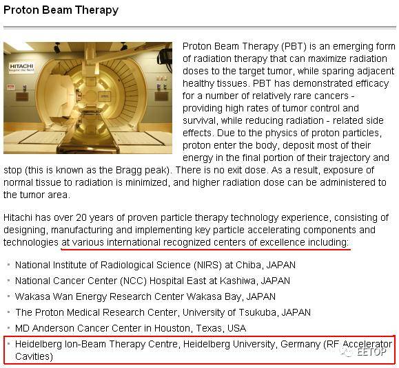 日立的质子束癌症放疗设备已经在全世界医院癌症科NO.1的美帝MD安德森进行了2400+实例,此外美帝总统御用医院梅奥诊所,美国国家癌症研究所NCI唯一指定的儿童综合癌症治疗兼研究机构St.Jude Children's Research Hospital,欧洲最大规模肿瘤科的德国海德堡大学医院都在利用日立的质子束放疗设备