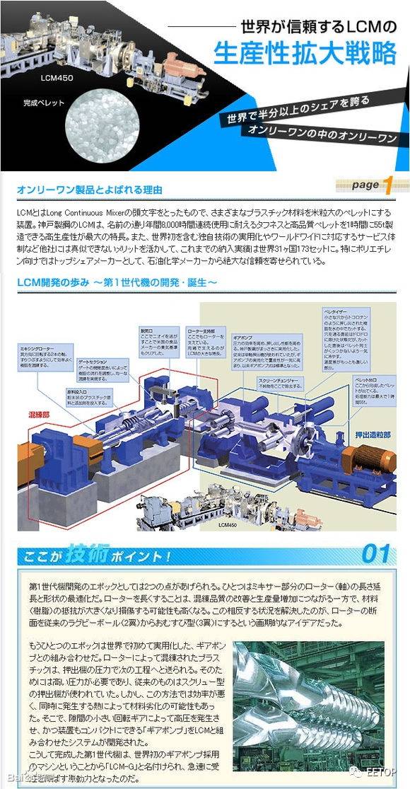 石化领域最关键的一种母机——PP PE大型挤压造粒机上拥有完全自主设计兼制造能力的全球就3家(日x2 德x1),其中日本制钢所的无齿轮泵式可以做到100th(87万t年)的世界最高水准,神户制钢则拥有全球最高占有率 ,PP/PE挤压造粒机是化工厂必备的设备,中国的那两桶油都是日企的客户。