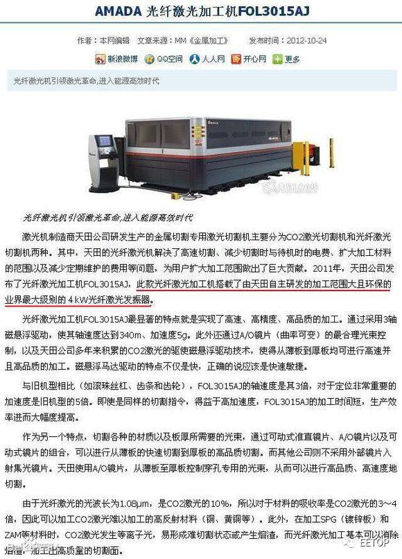 搭载业界首款4kw级光纤发振器的世界最快光纤激光金属切割机——天田FOL3015AJ
