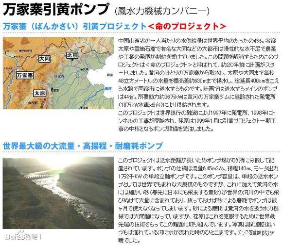 由日本ebara(荏原制作所)设计建造的世界最高单体扬程最大流量,也是最耐操的工业水泵被用于山西引黄工程 。