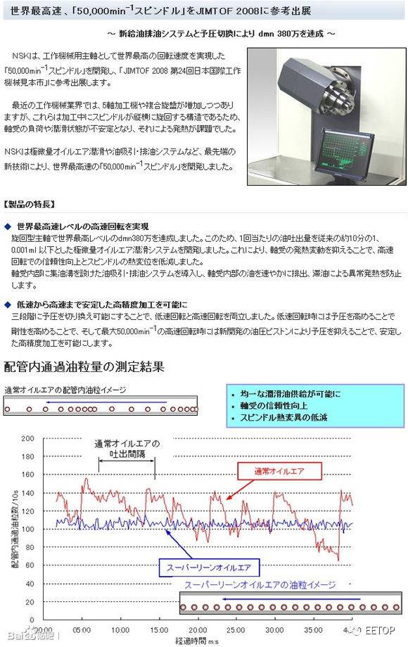 先来一个世界最高精度机床主轴。来自日本精工。 日本精工将自主设计的极微量油气润滑系统与定预压切换结构相结合。成功实现世界最高dmn值的工作机械(车床 加工中心)用主轴 。